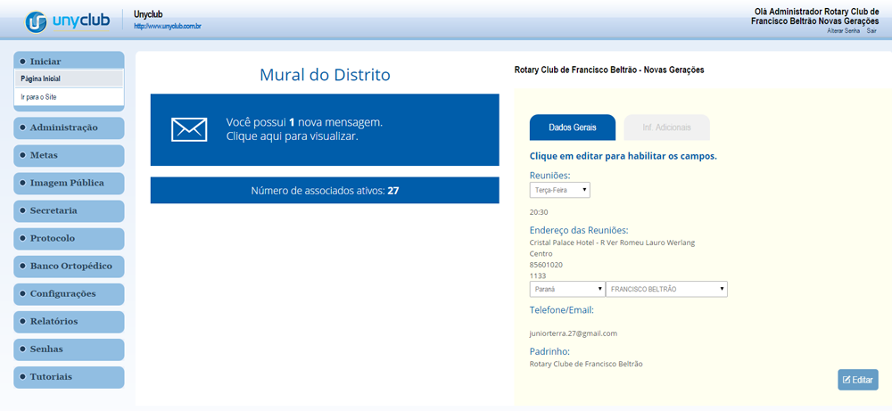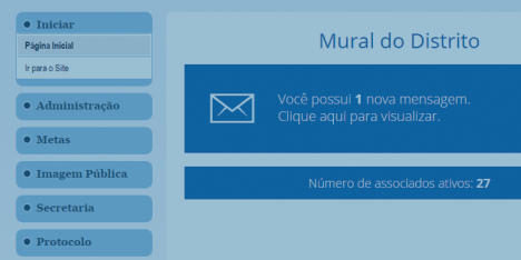 Com a integração do sistema podemos publicar na capa de abertura de cada página imagens e links de interesse do Rotary International.